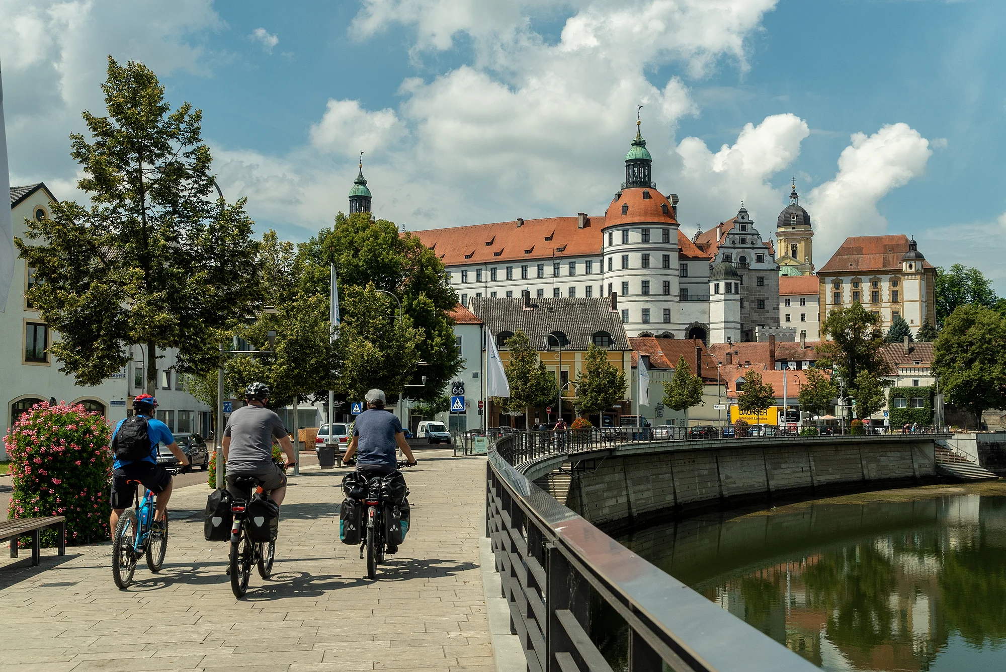 Nach einem ausgiebigen Frühstück, machten Markus und ich uns auf den Weg nach Neuburg a.d. Donau. Wo wir uns mit Achim von Ebike-Maass trafen. Schon von weitem ist die prächtige Schlossfassade mit den zwei markanten Rundtürmen zu erkennen. Die Stadt zählt zu den schönsten Renaissance-Städte Bayerns.