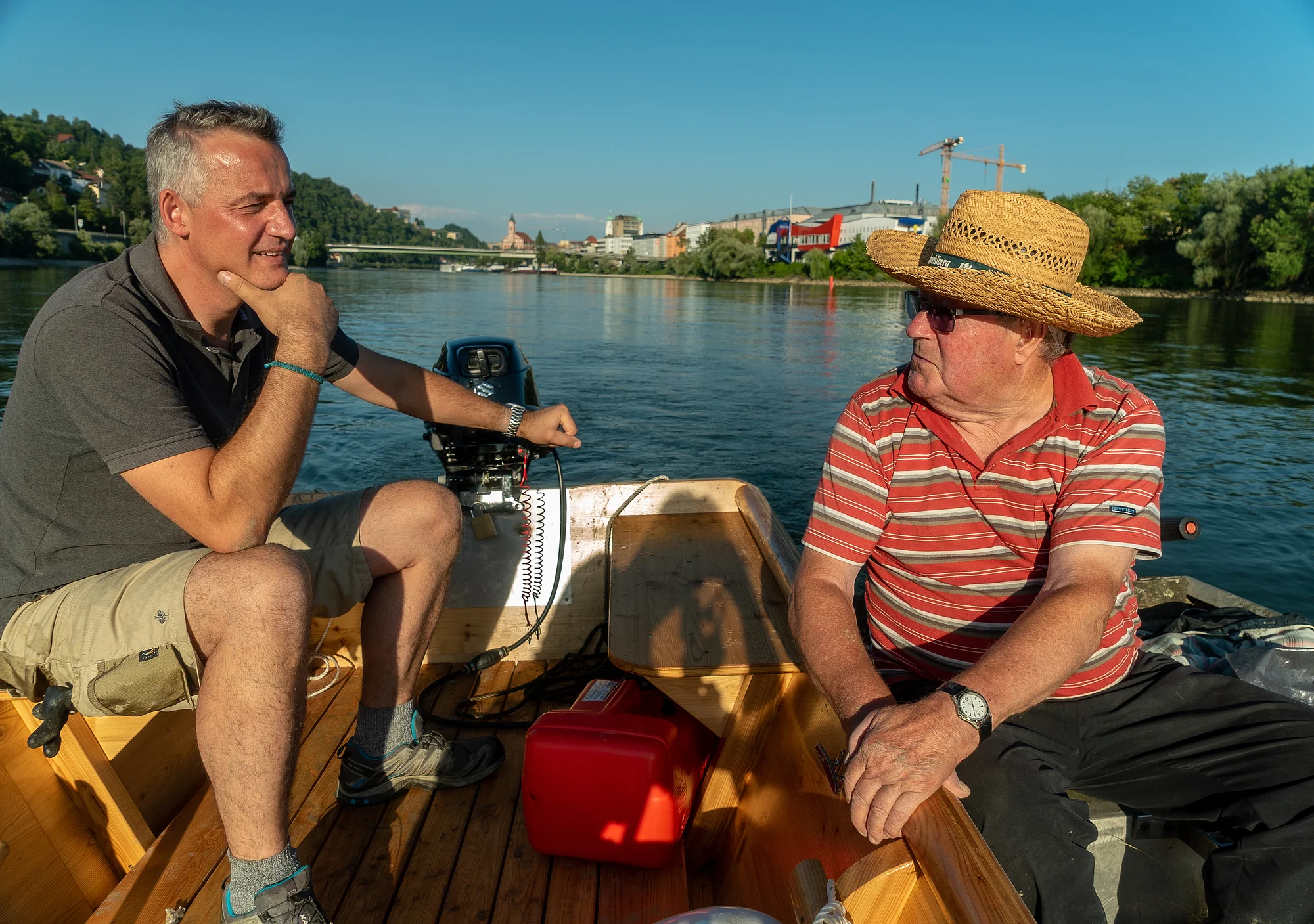 Abends ging es noch mit Florian Noé auf seiner Zille durch Passau. Er ist einer von zwölf Apostell-Fischer in der Stadt. Im 12-Apostel-Fischwasser besitzen zwölf Fischer, die zwölf Apostel genannt, das ausschließliche Fischereirecht. Dazu gehört auch, dass sie über die Weitergabe dieses Privileges oder die Nachfolge selbst entscheiden dürfen, obwohl das Fischwasser dem Heiliggeiststift gehört.