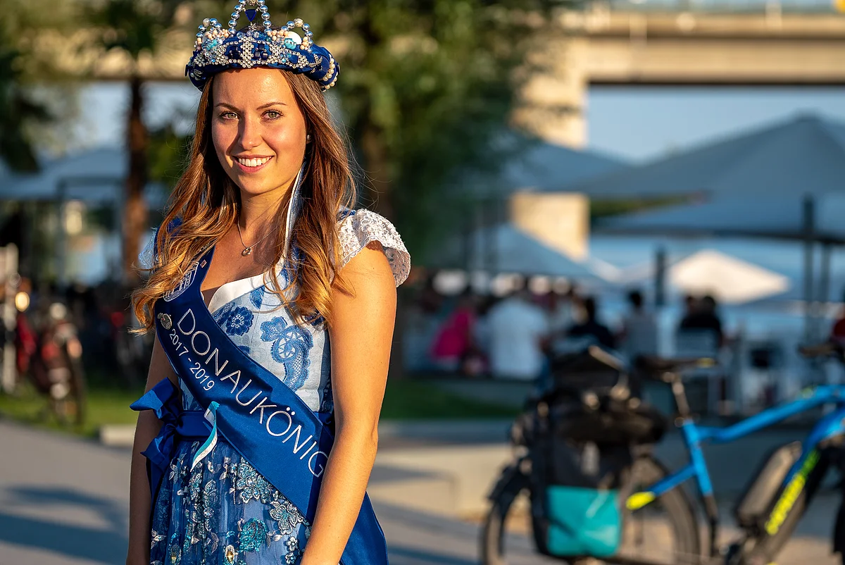 In Deggendorf traf ich mich kurz an der Strandbar mit Ihrer Hoheit, der Donaukönigin, dir mir dann erklärte, dass ich soeben über die längste Fahrradbrücke (456 Metern) Europas gefahren bin.