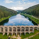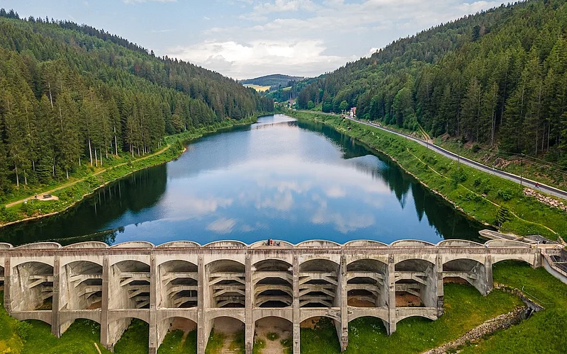 Kraftwerksgebäude und Linachtalsperre