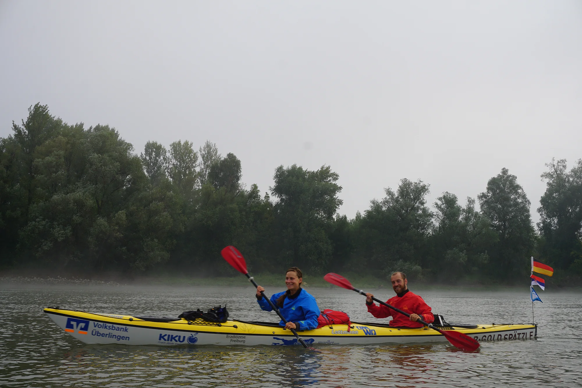 Здраво Serbia! Nach Grenzformalitätrn in Ungarn bei der Ausreise und der Anmeldung in Serbien was wieder Behördenkontakt und Formalitäten mit sich brachte können wir nicht nur ein hoch auf das Schengener Abkommen singen sondern auch eines auf die Freundlichkeit, mit der wir hier empfangen werden. Angler, Bootsfahrer, Spaziergänger winken uns zu und als gestern Abend Unwetter aufzogen erweiterten Diana und Sascha ihre Essens- und Schnapseinladung kurzerhand um einen trockenen Schlafplatz im Zelt eines Freundes. Einfach Weltklasse! Über all der Gastfreundschaft fast vergessen: wir haben Halbzeit! 1400 gepaddelt Kilometer liegen nun schon hinter uns. Mit Vorfreude und Spannung sehen wir nun den bevorstehenden 1400km bis ins Schwarze Meer entgegen!
