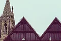Kaum im Hotel angekommen zieht es uns schon nach draußen an die Promenade. Der Blick von Neu-Ulm aus auf das andere Donau Ufer: unbezahlbar! Ein romantisches Fachwerkhaus reiht an das nächste und im Hintergrund ragt unverkennbar der höchste Kirchturm der Welt hervor. Das Ulmer Münster. 162m hoch; fünf Meter höher als der Kölner Dom.