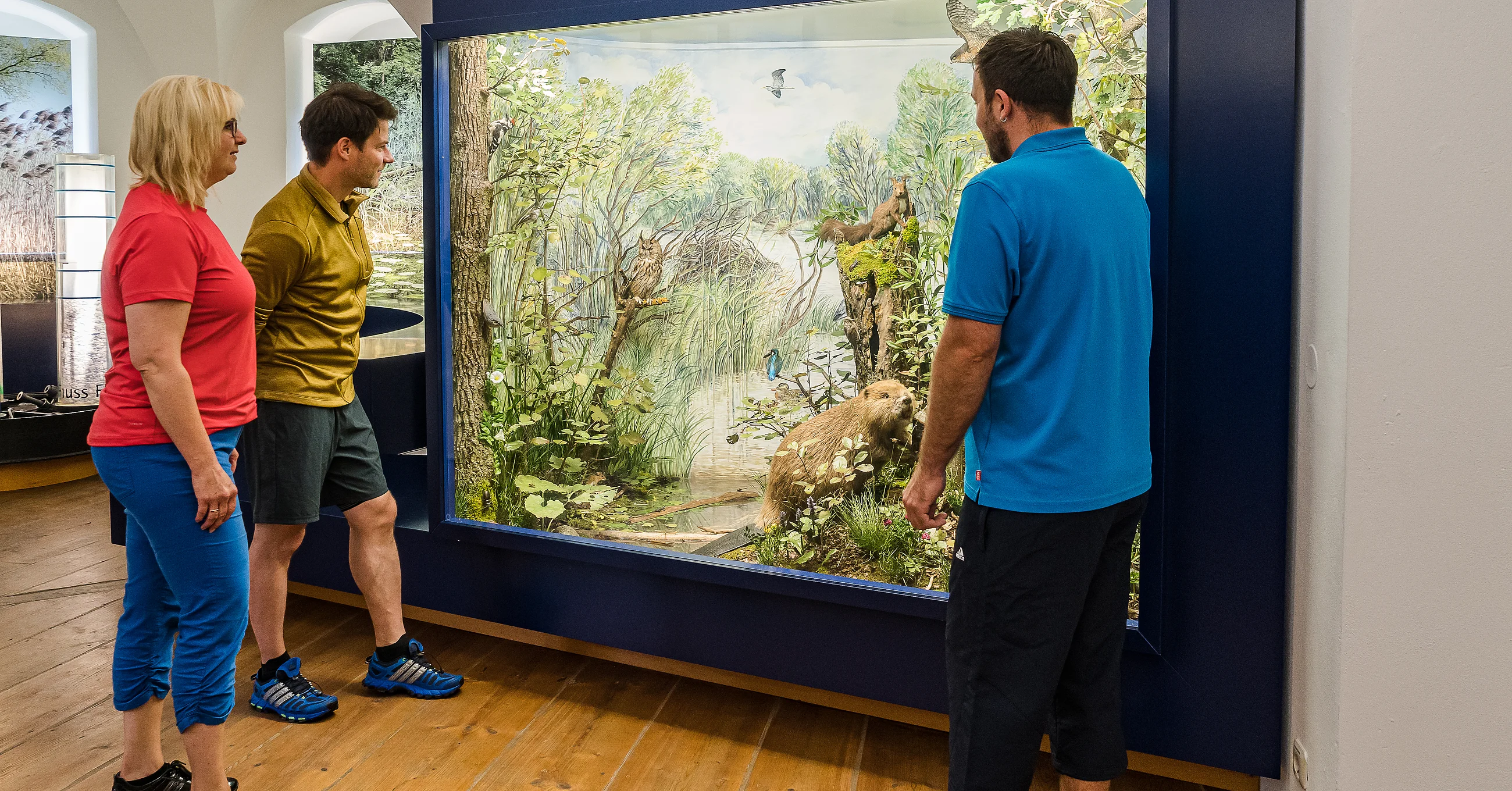 Das Aueninformationszentrum im Jagdschloss Grünau informiert anschaulich über das Ökosystem Fluss-Aue. In der Umgebung des Auenzentrums lassen sich die Donau- Auen zudem auf sechs informativen Themenwegen zu Fuß oder mit dem Rad erkunden.