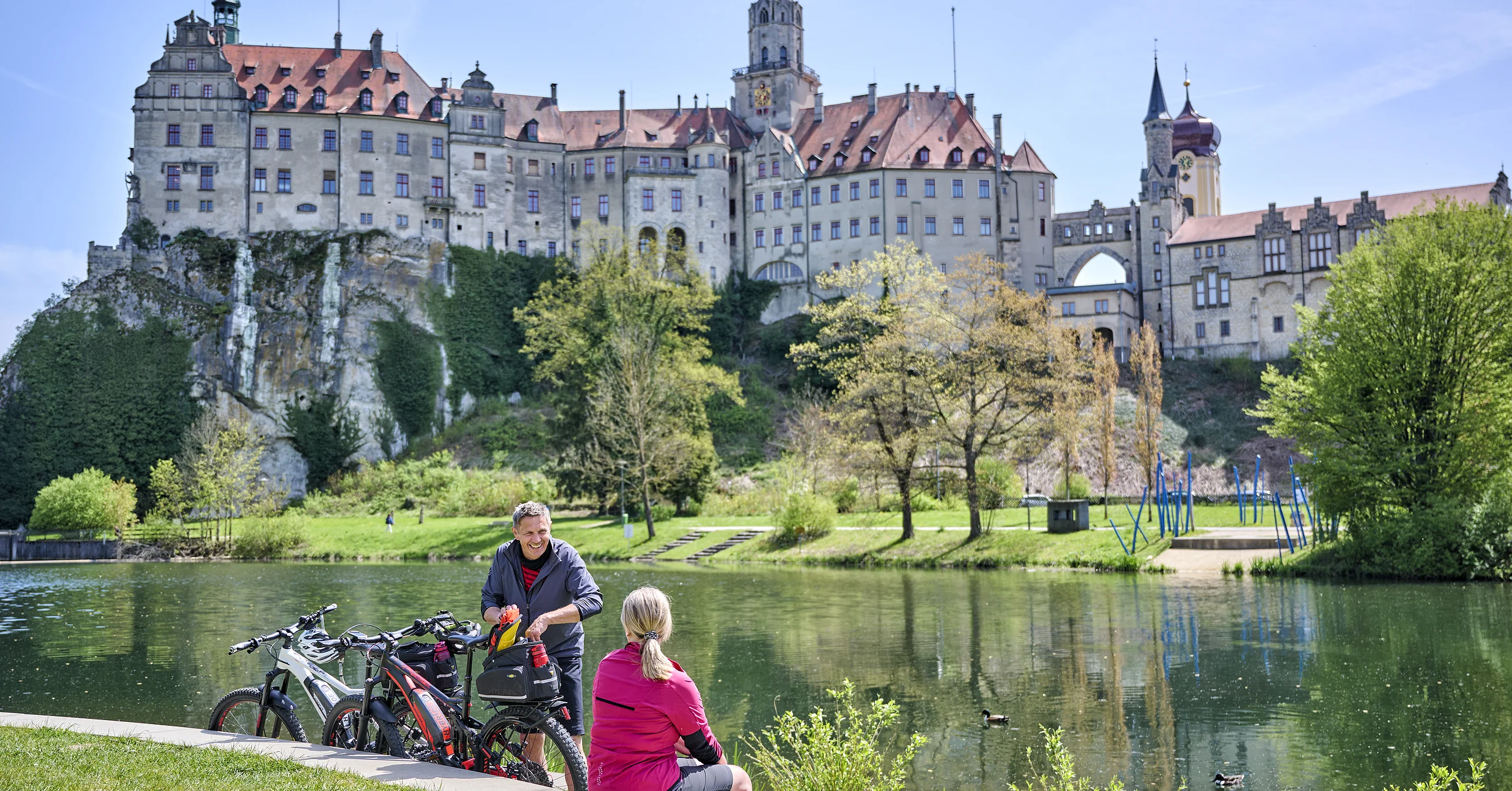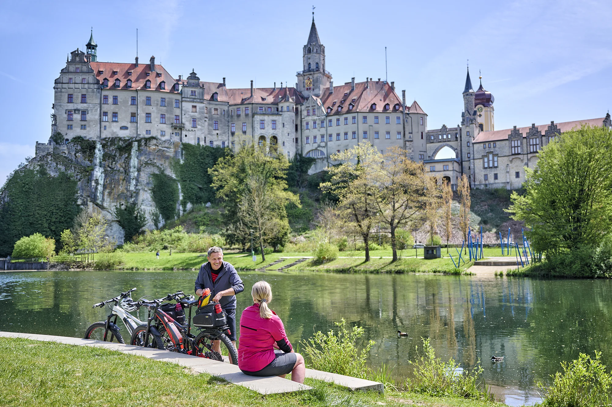 Am Donauufer entlang des Radwegs laden viele schöne Plätze zum Verweilen ein – mit traumhaftem Blick aufs Hohenzollernschloss Sigmaringen. Weitere Highlights entlang der Donau: Schaukelweg, Abenteuerspielplatz, Kneippgarten und der Jugendfreizeitbereich.