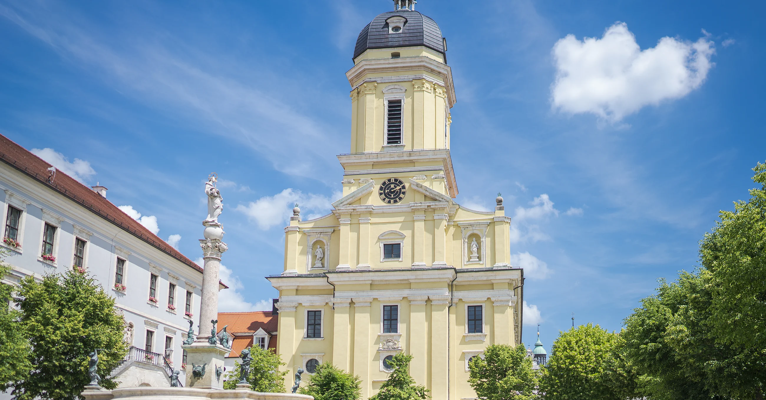 Prachtvolles Bauwerk der Spätrenaissance, das 1607 als protestantische Kirche begonnen und 1618 als katholisches Gotteshaus vollendet wurde. Geradliniger Frühbarock trifft auf Rokoko. Zwei der drei Altarbilder von Peter Paul Rubens sind in der Staatsgalerie im Schloss zu sehen.