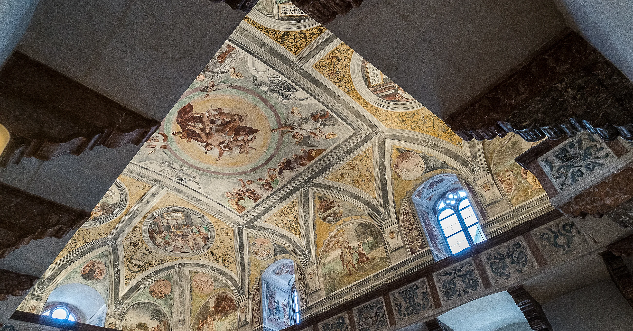 Die deutschlandweit älteste evangelisch-lutherische Kirche mit biblischem Bildprogramm wurde 1543 eingeweiht. Der Freskenzyklus des Kirchenmalers Hans Bocksberger d. Ä. brachte der Kapelle den Beinamen „Bayerische Sixtina“ ein.