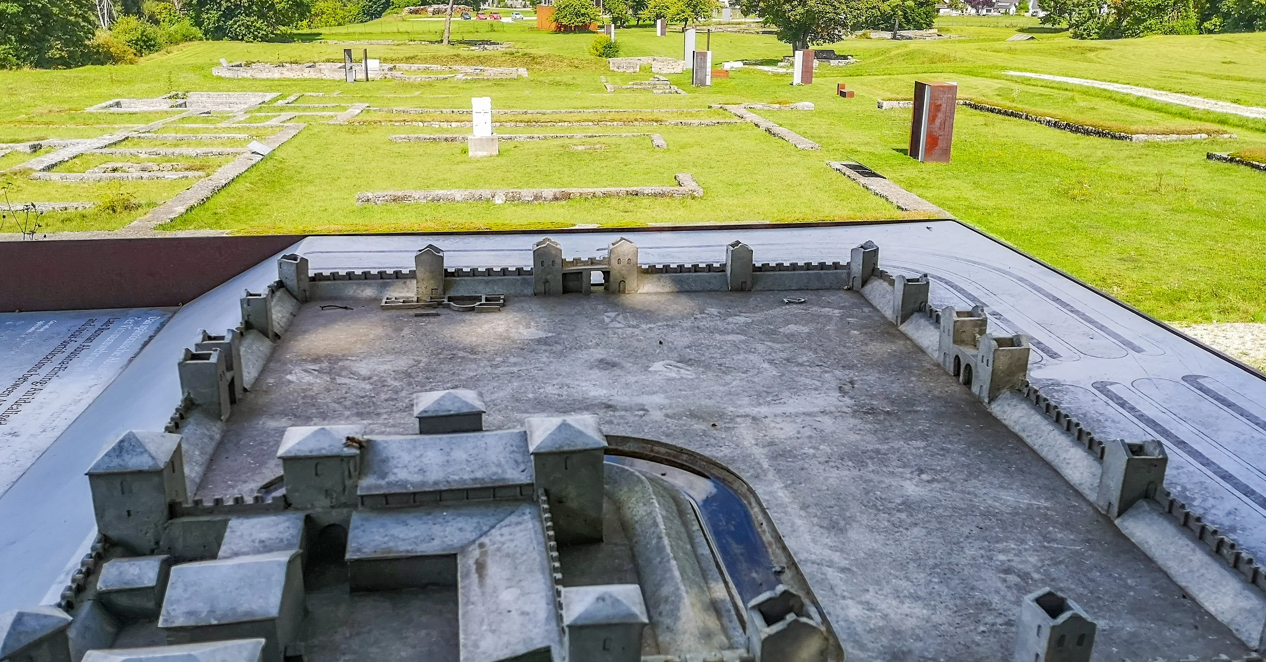 Freigelegte Grundmauern und Hörstationen eines römischen Kohortenkastells aus dem Jahr 80 n.Chr., Teil des UNESCO‑Welterbes Obergermanisch‑Rätischer Limes.
