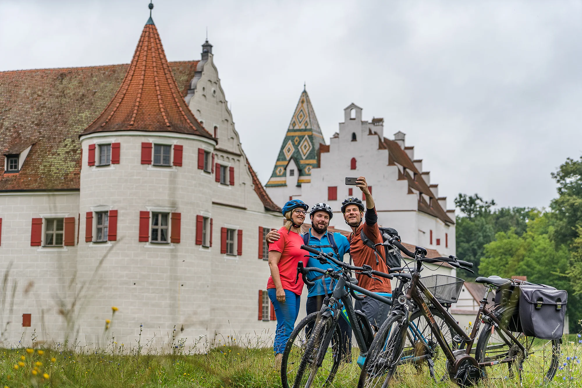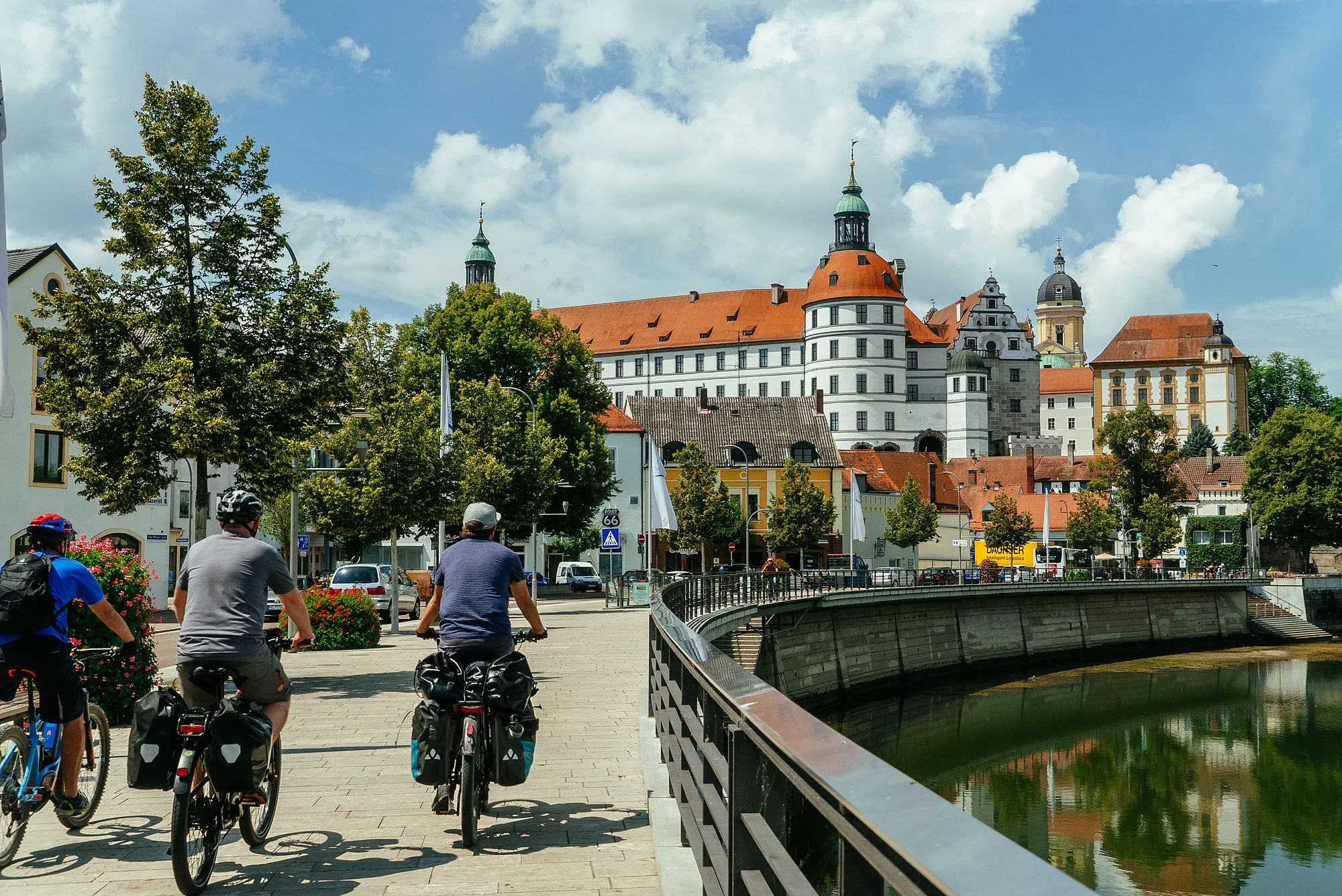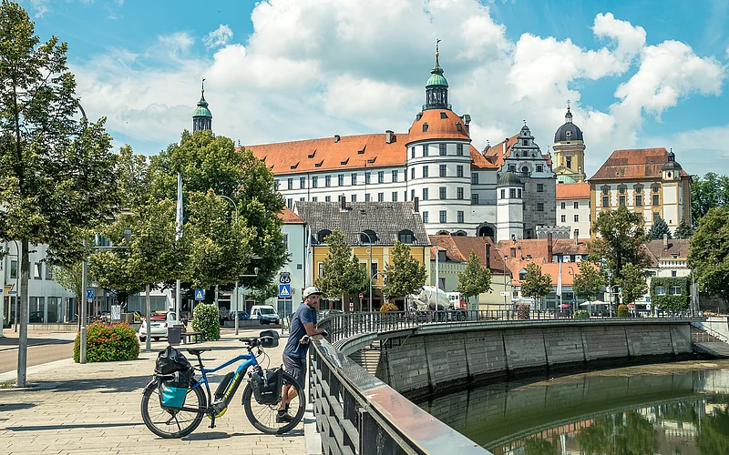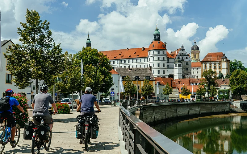 Die Schlaufe beginnt in Neuburg an der Donau mit seinem Renaissance- und Barockensemble und führt gen Westen Richtung Rennertshofen zu den Ausläufern der Fränkischen Alb. Bei Rennertshofen biegen wir ins Urdonautal ab und befinden uns damit schon im Naturpark Altmühltal. Nach Hütting biegen wir rechts ab auf den Schuttertalradweg. Unterwegs bietet sich ein Abstecher zur Heilig-Kreuz-Kirche in Bergen an. Die Strecke von Nassenfels bis Buxheim entlang der idyllischen Schutter ist ein besonderes Naturerlebnis. Auf dem Schlussstück des Weges erlebt man danach den langsamen Wechsel vom Lande in die Stadt Ingolstadt. Die pulsierende Automobilstadt verlassen wir südlich der Donau durch die Donauauen, teils auf asphaltierten Straßen mit kaum Verkehr. Der folgende Abschnitt führt von Ingolstadt bis Weichering. Von dort aus geht es auf geschwungenen Feldwegen und durch Alleen bis zum Schloss Grünau mit dem Informationszentrum zum Thema Donauauwald. Nun kehren wir auf den letzten Kilometern auf dem Donaudamm zurück zu unserem Ausgangspunkt, dem Stadtkern von Neuburg an der Donau.
