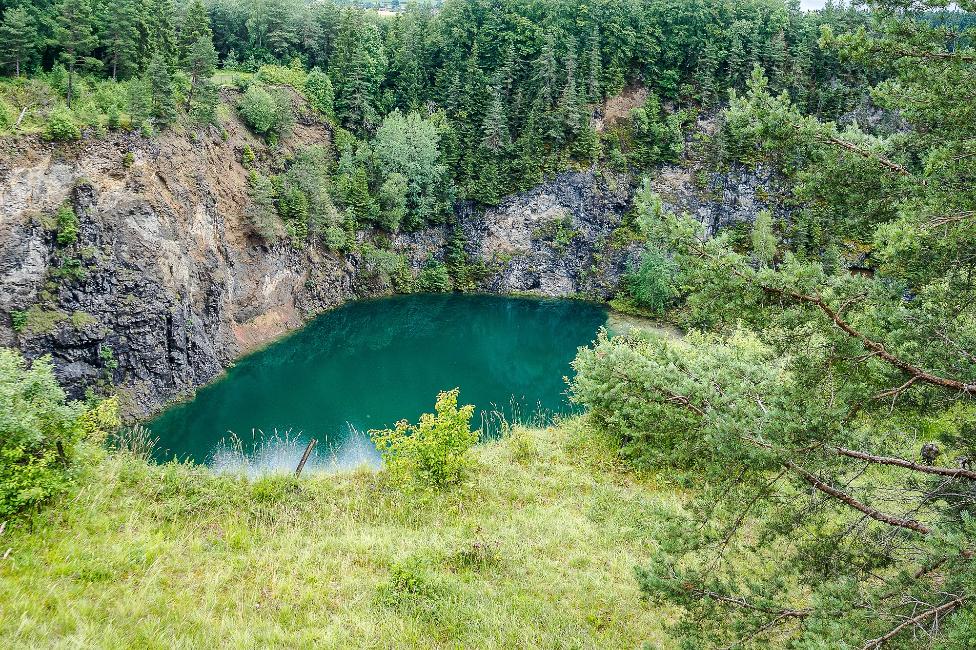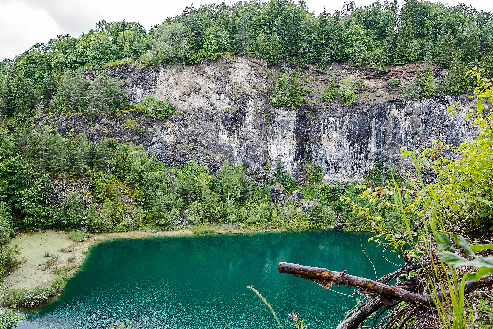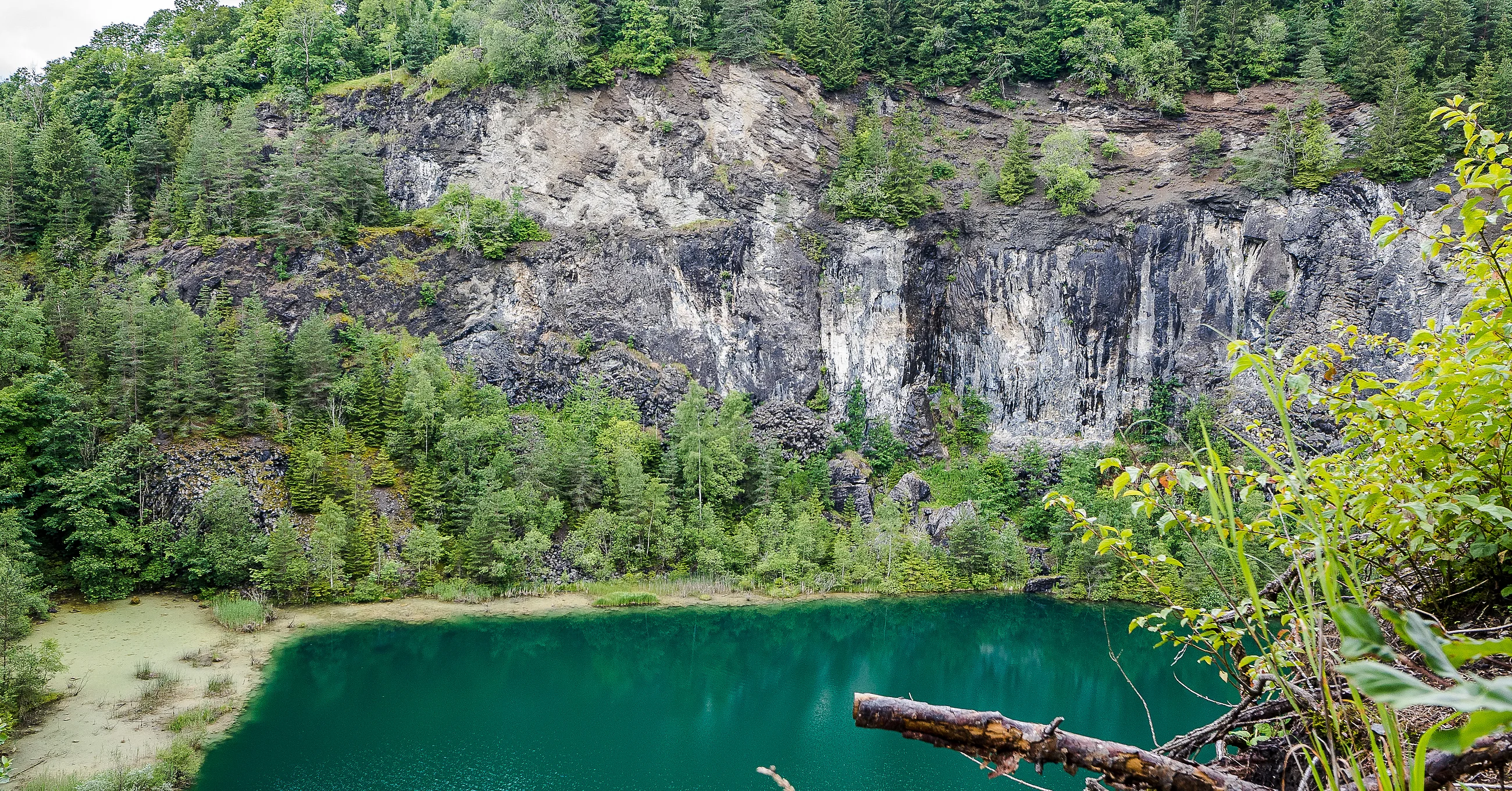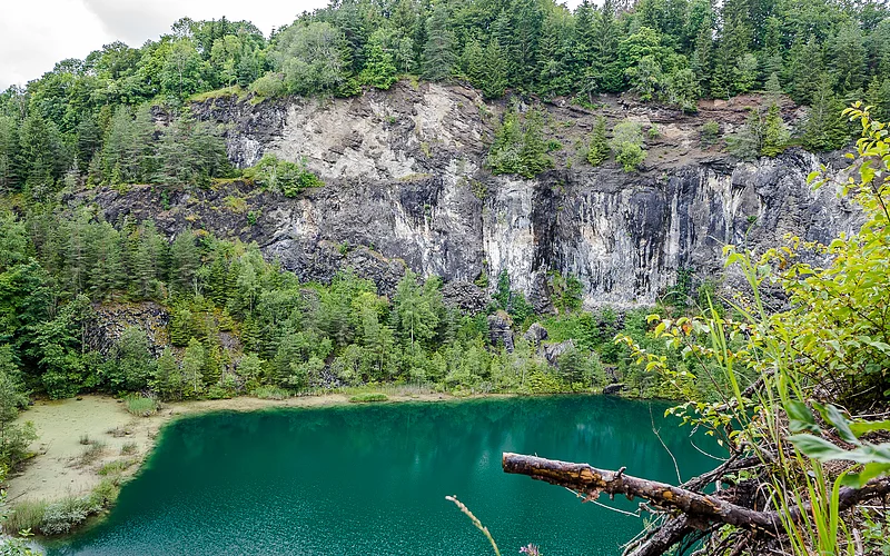 Diese Rundtour verdankt ihren Namen gleich mehreren spannenden geologischen Phänomenen: Einem Fluss der in zwei Meere fließt, einem unterirdischen Höhlensystem, einer besonderen Quelle und dem Vulkanismus im Hegau. In Immendingen und Möhringen versinkt ein großer Teil des Donauwassers einfach in Schlucklöchern. Was oberirdisch abfließt, mündet irgendwann im Schwarzen Meer. Was aber verschwindet und unterirdisch abfließt, taucht nach zwei bis drei Tagen in der Aachquelle im Hegau wieder auf. Von dort fließt das Donauwasser in den Bodensee und dann mit dem Rhein in die Nordsee. Schon der Anblick der Vulkane vom höchsten Punkt der Radtour aus ist imposant. Wie Kegel ragen die einzelnen Vulkane aus der Landschaft. Ganz aus der Nähe überrascht der Höwenegg aber noch mehr. Staunend steht man vor dem grün schimmernden „Kratersee“ – der gar kein Krater ist, sondern durch Basaltabbau entstanden ist. Das heutige Naturschutzgebiet ist auch einer der bedeutendsten Fundorte des Urpferdes, dass vor mehreren Millionen Jahren auch hier heimisch war.
